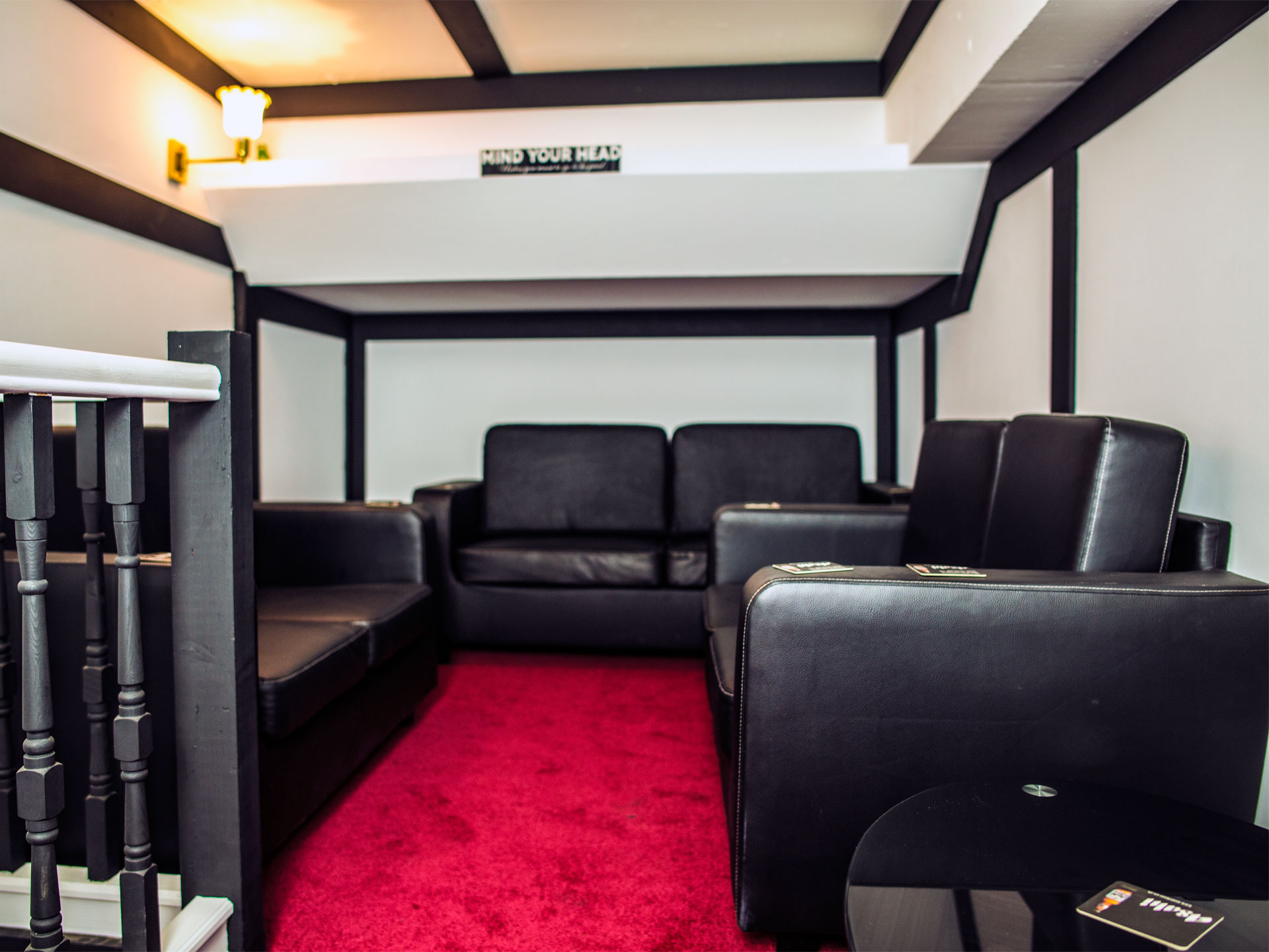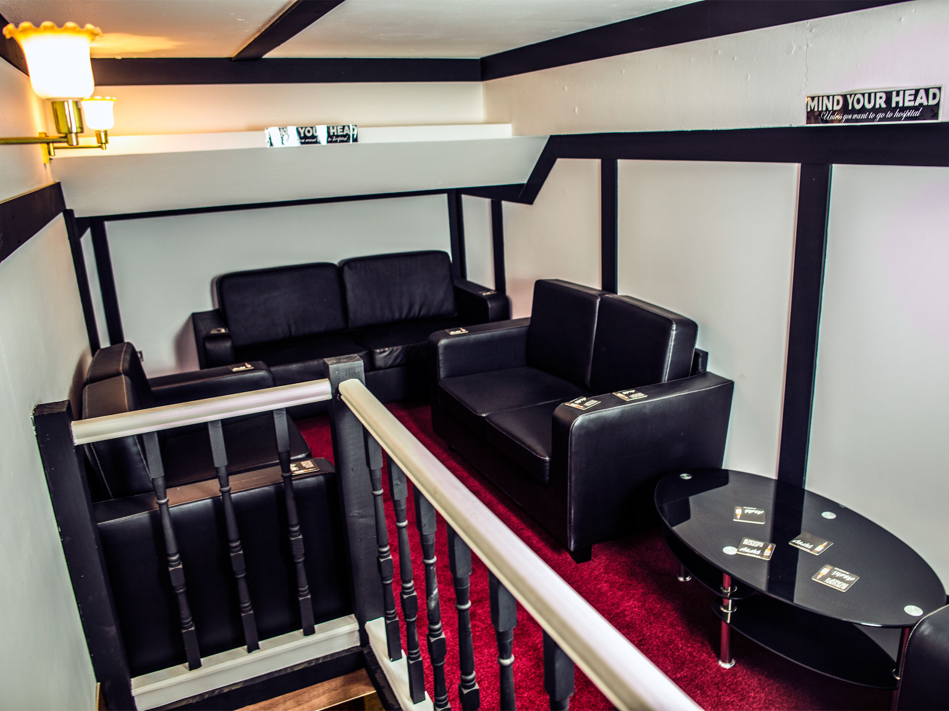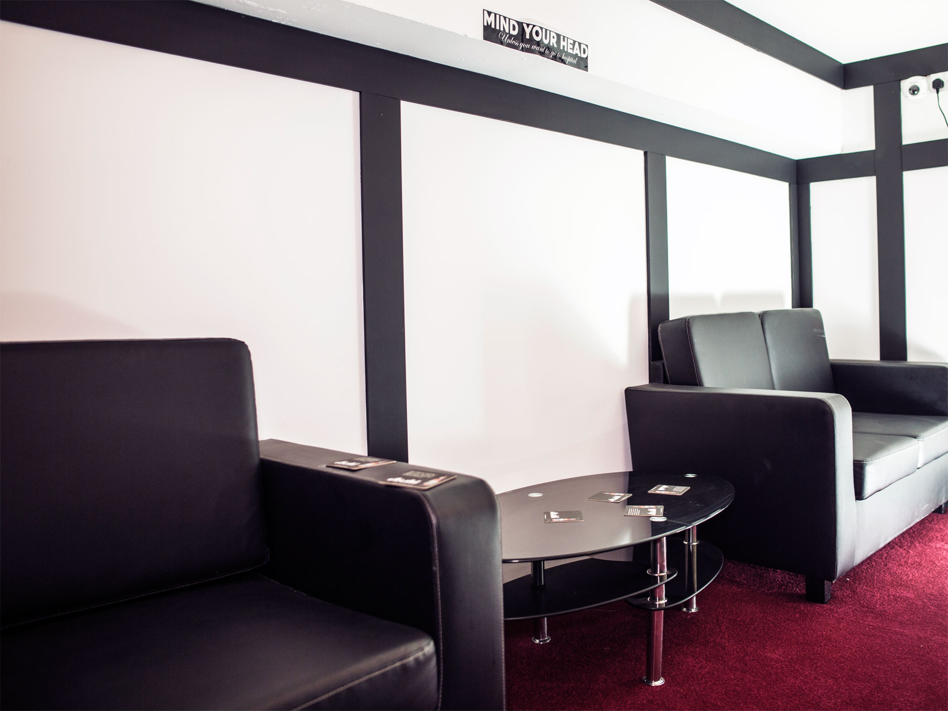 Available for hireV.I.P room is another quite private room away from the music but close to the bar. It has a number of black two seater leather sofas and a glass table into order to place your drinks on it.